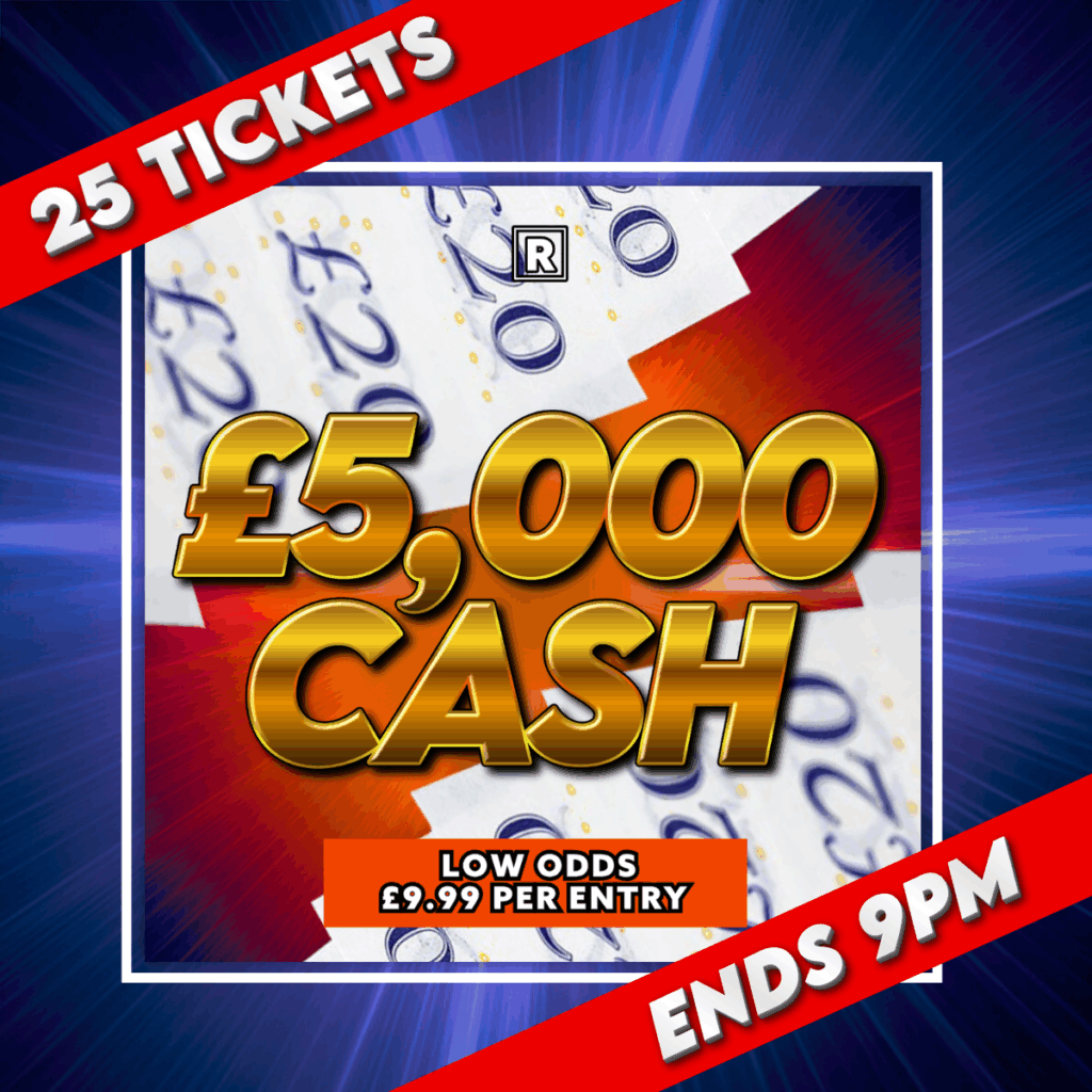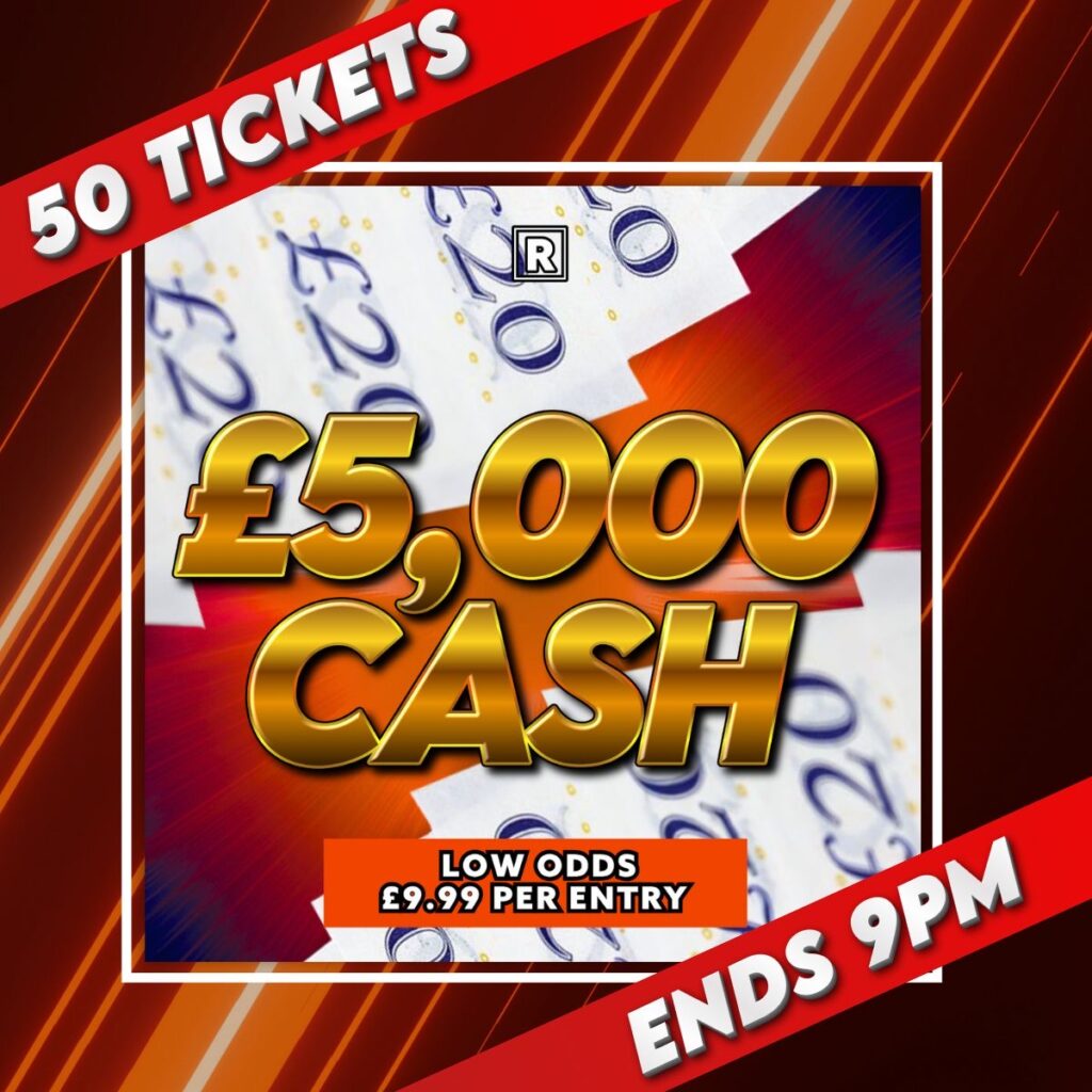 100 TICKETS into £5000 CASH COMP! (Worth £1000!) – 12 Hours Only – Auto Draw