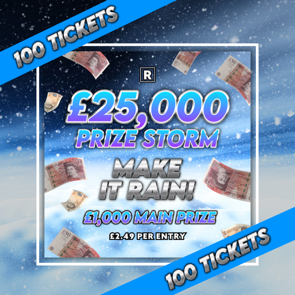ENDS 31st Dec at 8:00 PMSOLD: 0.91%145/15999THE £25K - PRIZE STORM - MAKE IT RAIN ! (£1000 Main Prize!!)