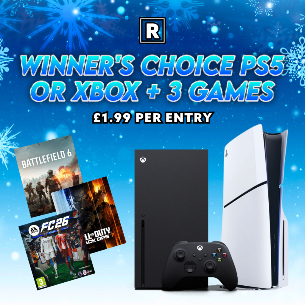 ENDS 17th Dec at 8:00 PMSOLD: 18.64%93/499WINNERS CHOICE PS5 OR XBOX + 3 GAMES (£600 Cash Alt)