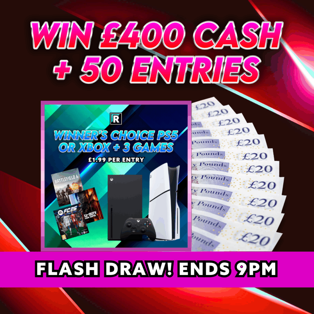 ENDED ON 26th Nov, 2025 at 8:00 PMSOLD: 86.17%430/499WINNERS CHOICE PS5 OR XBOX + 3 GAMES (£600 Cash Alt)