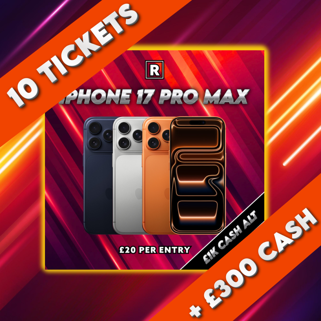 ENDED ON 4th Jan, 2026 at 9:00 PMSOLD: 51.44%411/79910 tickets into IPhone 17 Pro Max cash + £300 CASH