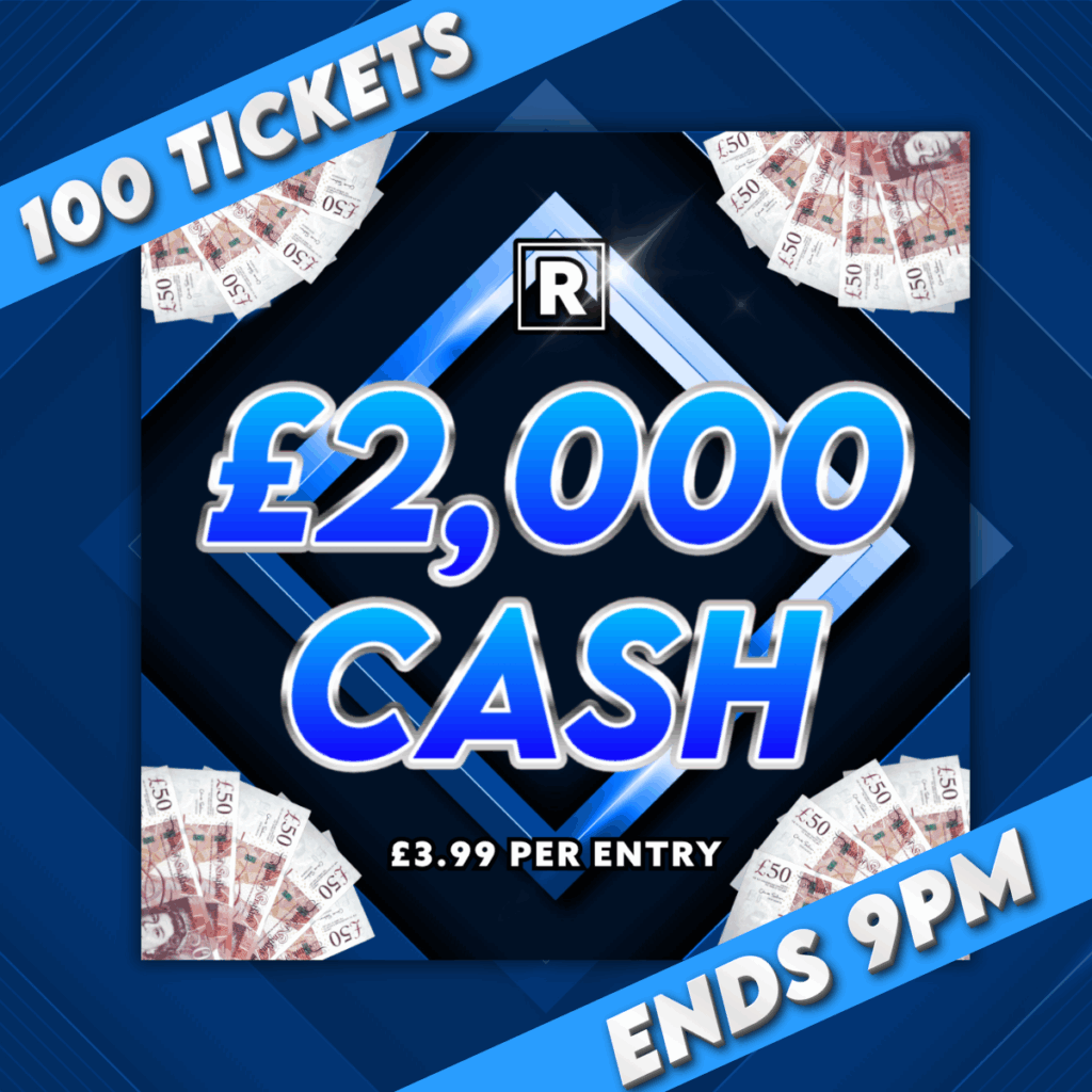 ENDED ON 30th Sep, 2025 at 9:00 PMSOLD: 50.17%150/299100 TICKETS into £5000 CASH COMP! (Worth £1000!) - 12 Hours Only - Auto Draw