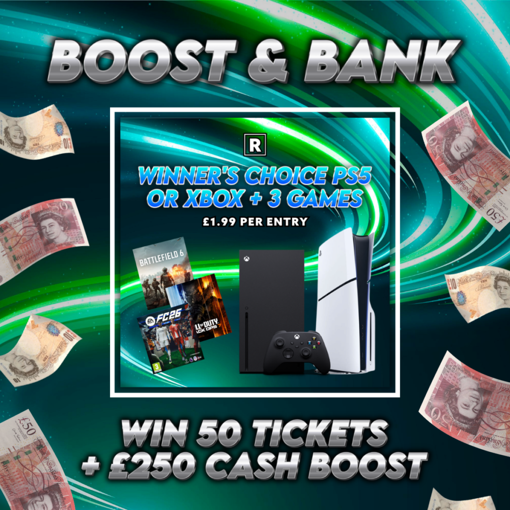 ENDED ON 13th Feb, 2026 at 9:00 PMSOLD: 43.80%350/79950 Tickets into PS5/XBOX Comp + £250 Cash