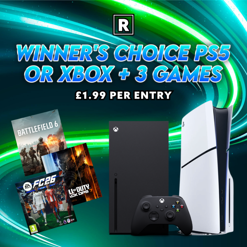 ENDED ON 18th Feb, 2026 at 8:00 PMSOLD: 57.72%288/499WINNERS CHOICE PS5 OR XBOX + 3 GAMES (£600 Cash Alt)
