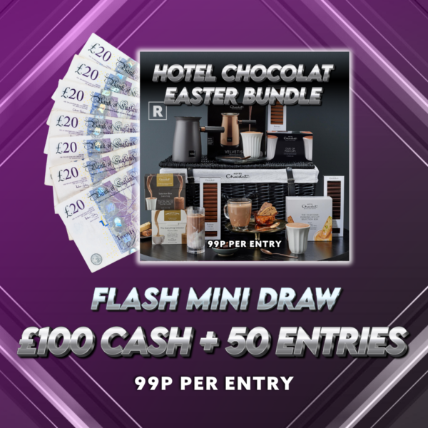 LOW ODDS Flash Mini Auto Draw Alert! Win £100 CASH + 50 Tickets into the delicious Easter Hamper Competition! 🤑 All for just 99p!🔥