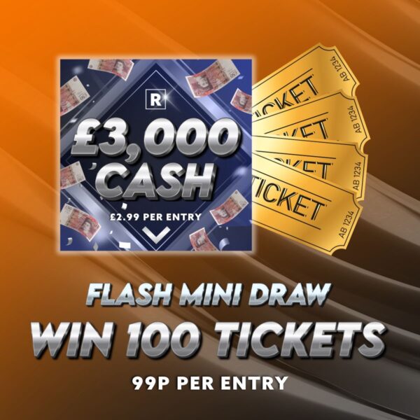 LOW ODDS Flash Mini Auto Draw Alert! Win a MASSIVE  100 Tickets (worth nearly £300!!) for the AWSOME £3000 CASH 🤑 Competition!  for just 99p!🔥