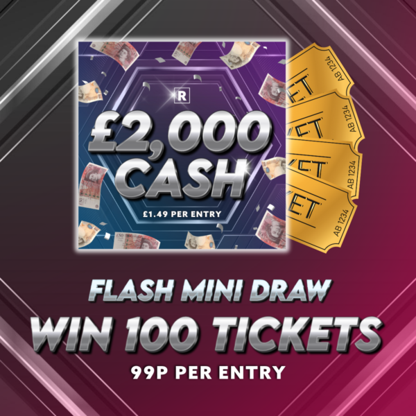 LOW ODDS Flash Mini Auto Draw Alert! Win a MASSIVE 100 Tickets (worth nearly £200!!) for the AWSOME £2000 CASH 🤑 Competition! for just 99p!🔥