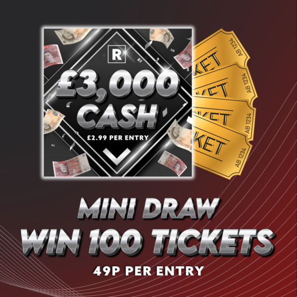LOW ODDS Flash Mini Auto Draw Alert! Win 100 Tickets for the MASSIVE £3000 CASH 🤑Competition! for just 49p! 🔥