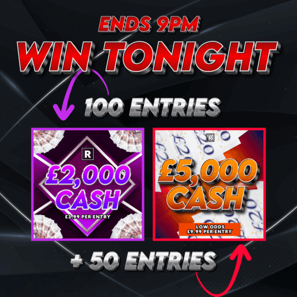 Win 100 tickets into the £2000 cash comp PLUS 50 Tickets into the New £5000 Cash competition total prize value worth nearly £900! 🔥 All for just £2.99! 🤑