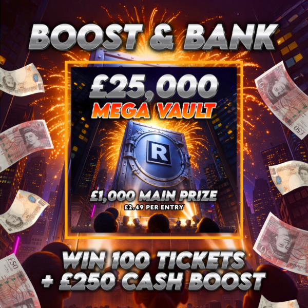 Win 100 tickets into the £25K Mega Vault Instant win comp PLUS £250 CASH 🔥 All for just £1.99 🤑