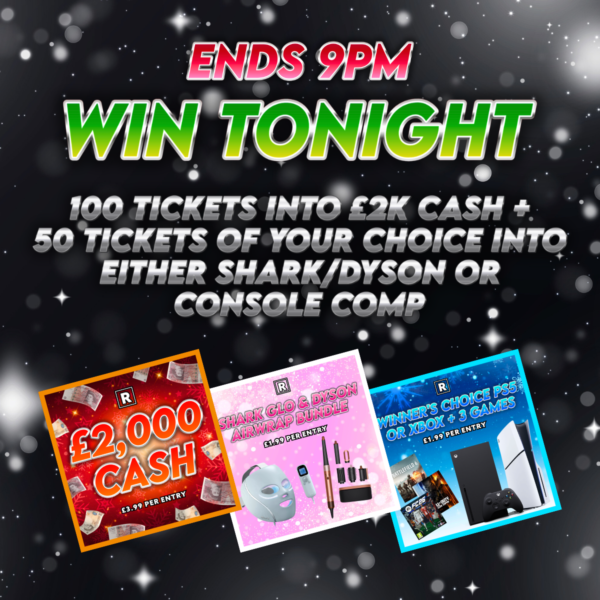 Win 100 tickets into the £2000 cash comp PLUS 50 Tickets into the New PS5/Xbox or Shark/Dyson competition 🔥 All for just 99p! 🤑