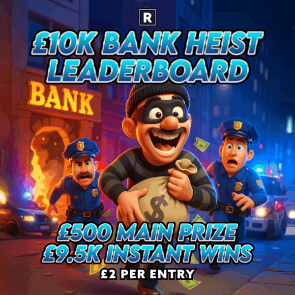£10,000 Bank Heist – £500 Cash Main Prize £9,500 Instant Wins