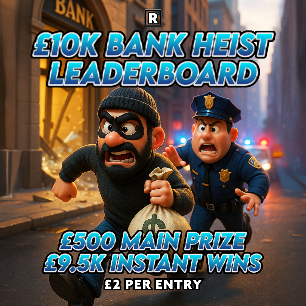 £10,000 Bank Heist – £500 Cash Main Prize £9,500 Instant Wins