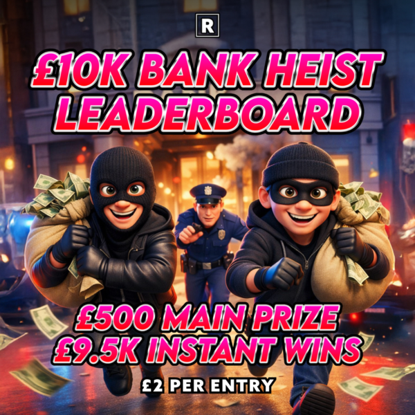 £10,000 Bank Heist – £500 Cash Main Prize £9,500 Instant Wins