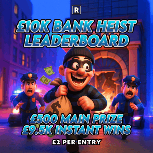 £10,000 Bank Heist – £500 Cash Main Prize £9,500 Instant Wins