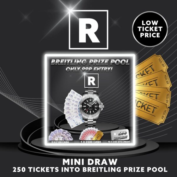 This mini comp is as straightforward as it gets. Purchase your tickets for just 99p!🔥 for your chance to win big. With 250 tickets up for grabs, your odds of entering the Breitling Prize Pool Competition are looking better than ever!