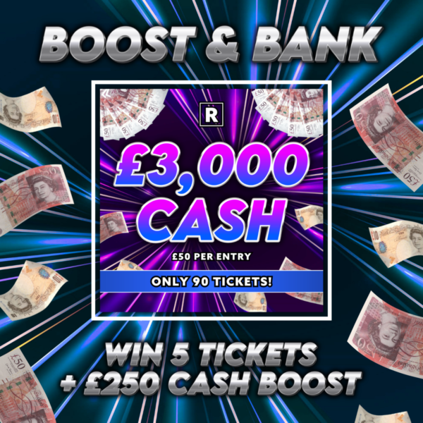 LOW ODDS Flash Mini Auto Draw Alert! Win 5 Tickets into the £3000 Cash Comp (worth £250!) 🤑 PLUS £250 Cash! Tickets are just £1.99