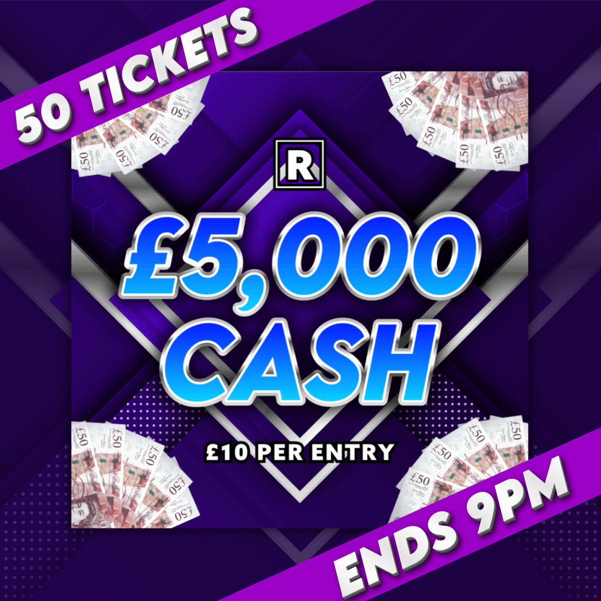 Win 50 Tickets into the New £5000 Cash competition worth nearly £500! 🔥 All for just £1.99! 🤑