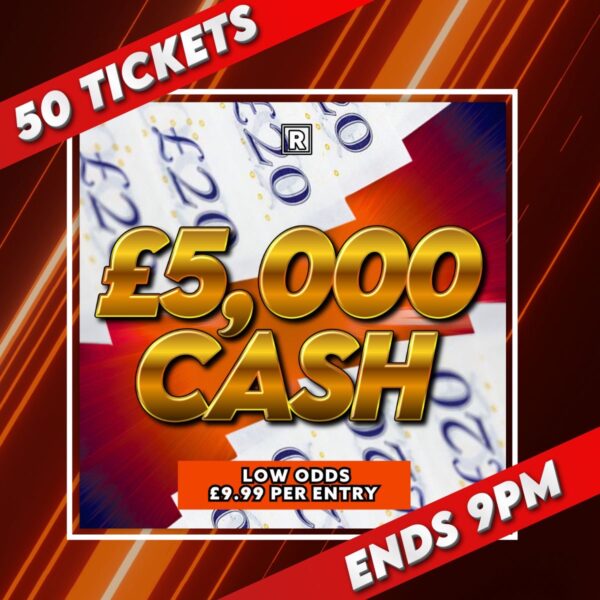 Win 50 Tickets into the New £5000 Cash competition worth nearly £500! 🔥 All for just £1.99! 🤑