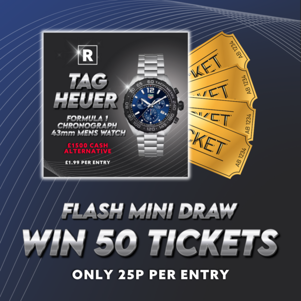 LOW ODDS Mini Auto Draw Alert! Win FLASH 50 Tickets for the TAG Formula one Competition! ⌚️ for just 25p! 🔥