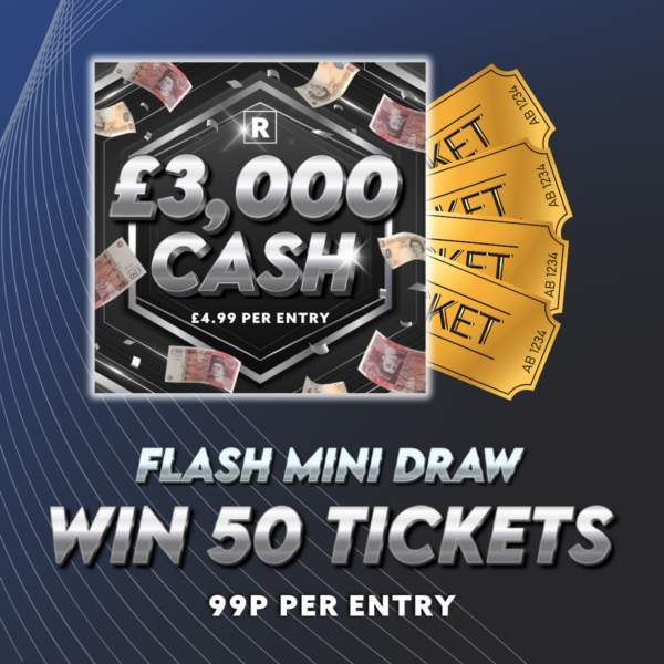 LOW ODDS Flash Mini Auto Draw Alert! Win 50 Tickets (worth nearly £250) for the AWSOME £3000 CASH 🤑 Competition! for just 99p!🔥