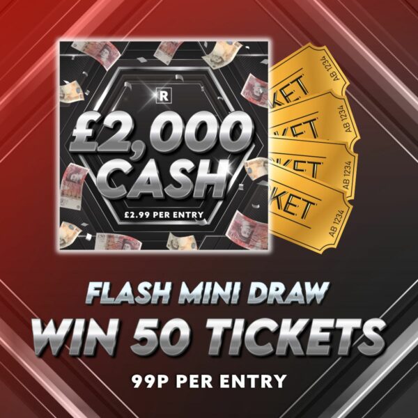 LOW ODDS Flash Mini Auto Draw Alert! Win  50 Tickets (worth nearly £150) for the AWSOME £2000 CASH 🤑 Competition!  for just 99p!🔥