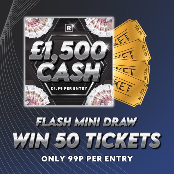 LOW ODDS Flash Mini Auto Draw Alert! Win 50 Tickets for the £1500 CASH 🤑Competition! for just 99p! 🔥