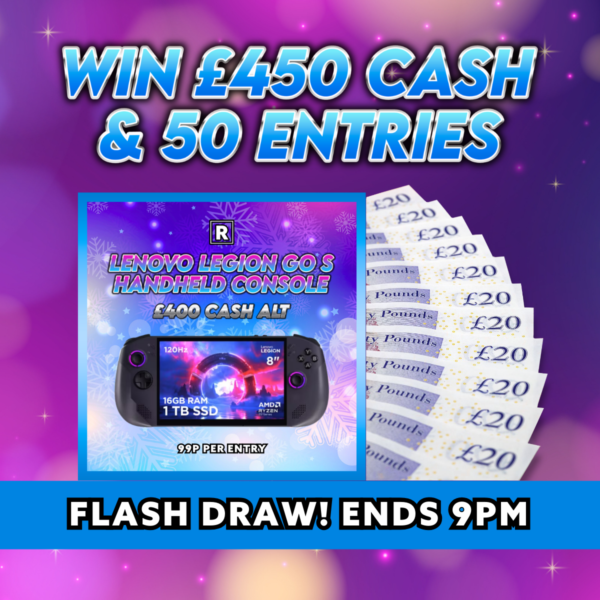 LOW ODDS Flash Mini Auto Draw Alert! Win 50 Tickets into the Lenovo Legion Go S comp 🤑 PLUS £450 Cash! Tickets are just 99p!