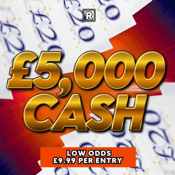 win an amazing £5000 with our exciting LOW ODDS cash giveaway!  For just £9.99 a ticket!! 🔥 you could be taking home £5000 tax free CASH 🤑