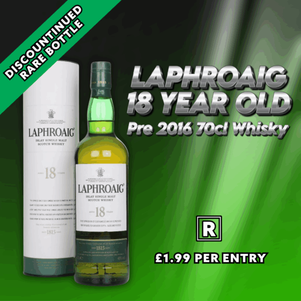 An older style bottling of Laphroaig’s 18 year old single malt Scotch whisky, boasting a neat label and presentation tube. This livery existed between 2013 and 2016 when the 18 year old was discontinued.