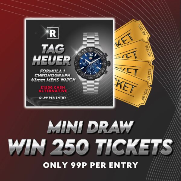 Revere Competitions is here with a LOW PRICE mini competition that offers you a shortcut to winning big in the TAG F1 Competition! This is your chance to secure a whopping 250 tickets for the stunning brand new TAG F1 Competition.