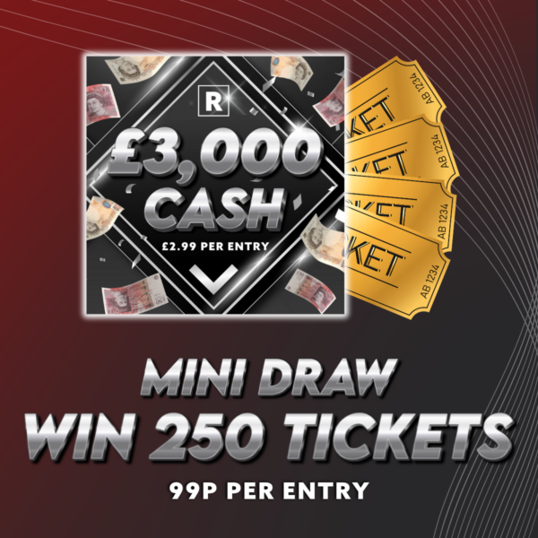 🔥 LOW PRICE Mini Draw Alert! Win 250 Tickets our massive £3000 TAX FREE Competition!  🔥