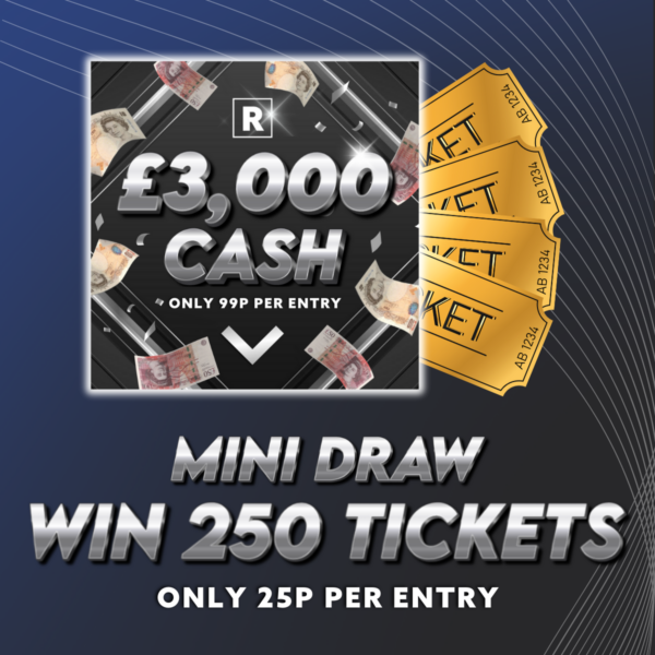 🔥 LOW PRICE Mini Draw Alert! Win 250 Tickets our massive £3000 TAX FREE Competition! 🔥