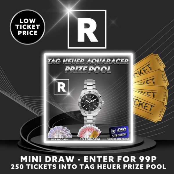 Revere Competitions is here with a LOW PRICE mini competition that offers you a shortcut to winning big in the Tag Aquaracer Prize Pool Competition! This is your chance to secure a whopping 250 tickets for the stunning brand new Tag Aquaracer Prize Pool Competition.