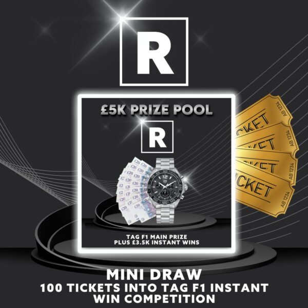 Don’t miss this opportunity to fast-track your way into the Tag F1 Instant Win Competition. Grab your tickets for this mini draw and secure your place among the contenders vying for the incredible TAG Heuer Formula 1 watch and £3500 of Instant wins.