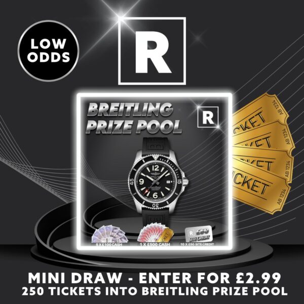 Revere Competitions is here with a LOW ODDS mini competition that offers you a shortcut to winning big in the Breitling Prize Pool Competition! This is your chance to secure a whopping 250 tickets for the stunning Breitling Prize Pool Competition.