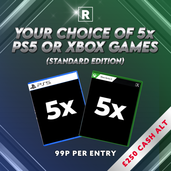 Win this 5 game bundle for only 99p! 🔥 and with LOW ODDS! there are just 399 tickets available meaing your chances of winning are looking amazing.